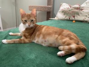 DAHLIA is a friendly, outgoing 1 year old kitty who came into our care pregnant. She is a curious kitty who comes right out of the carrier to inspect her new surroundings then settles down to figure out her next move. She is very playful and especially loves catnip toys.