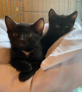 We also have her last two remaining kittens, Inca and Perrc. Two other kittens from this litter found homes before coming into our care. These sweet girls need to get their initial kitten vetting done then will be ready for adoption later in August.